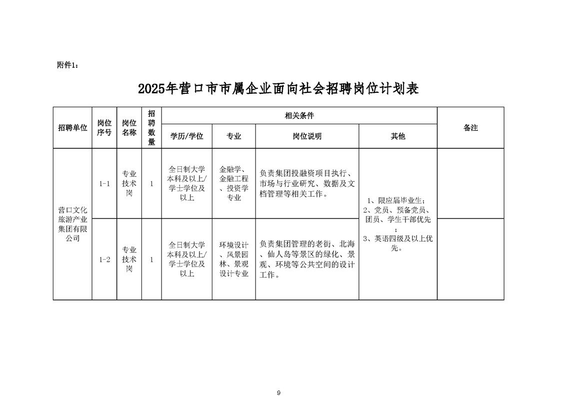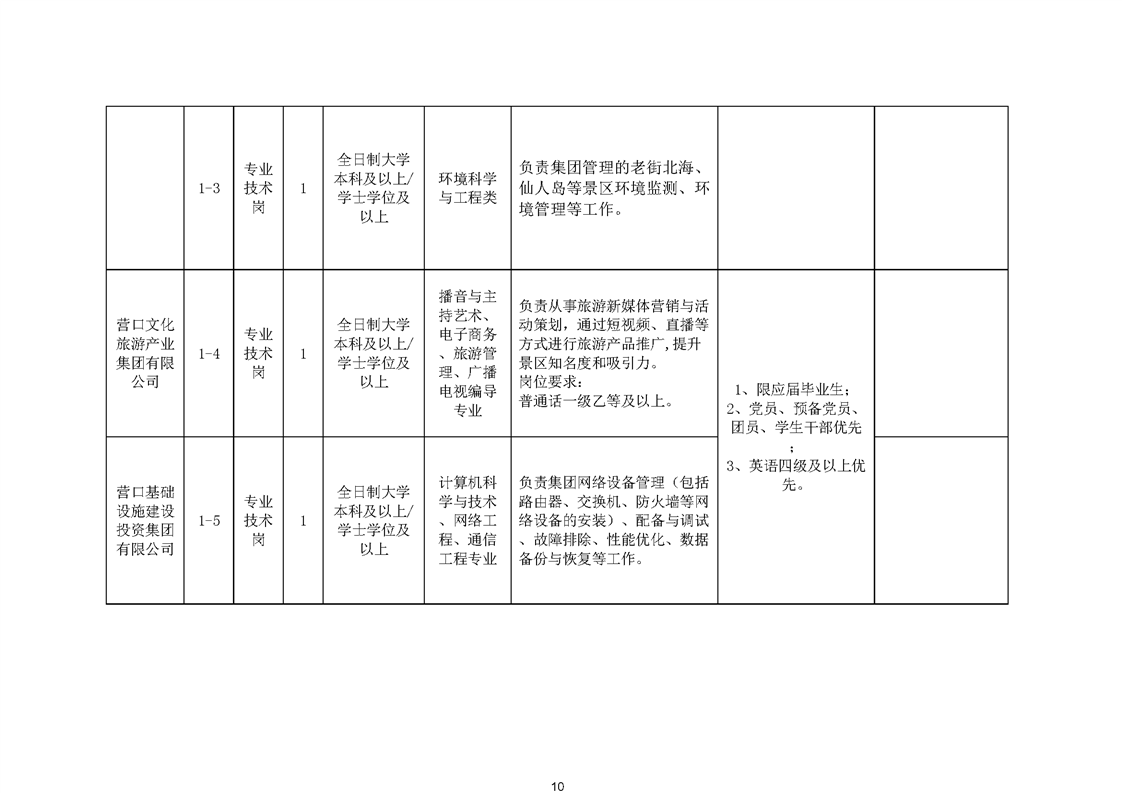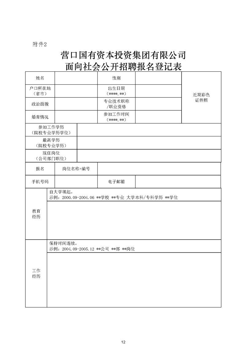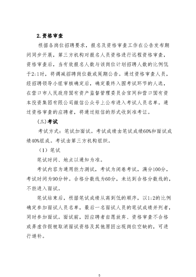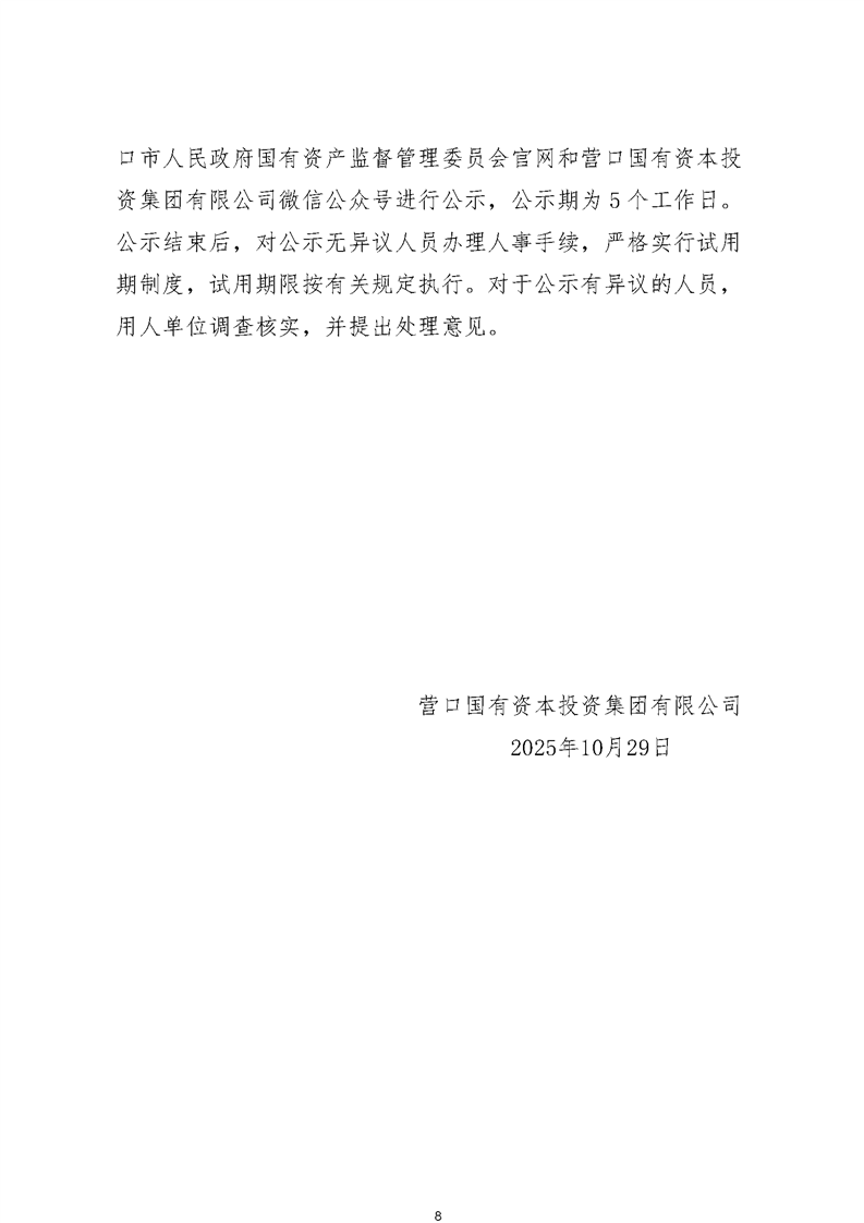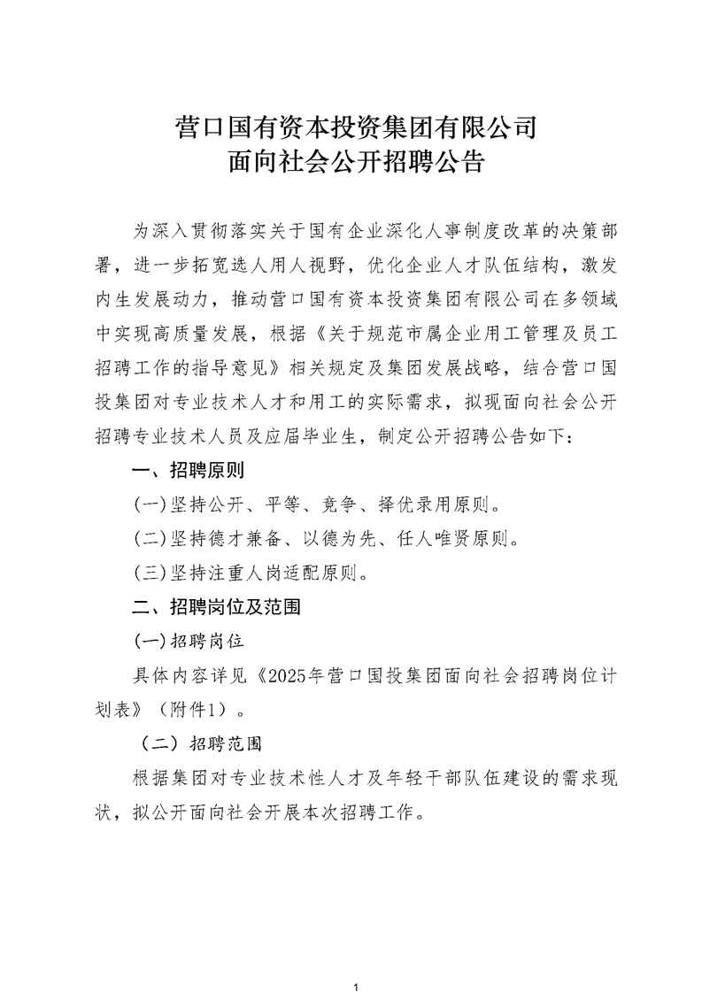 营口国有资本投资集团有限公司面向社会公开招聘公告