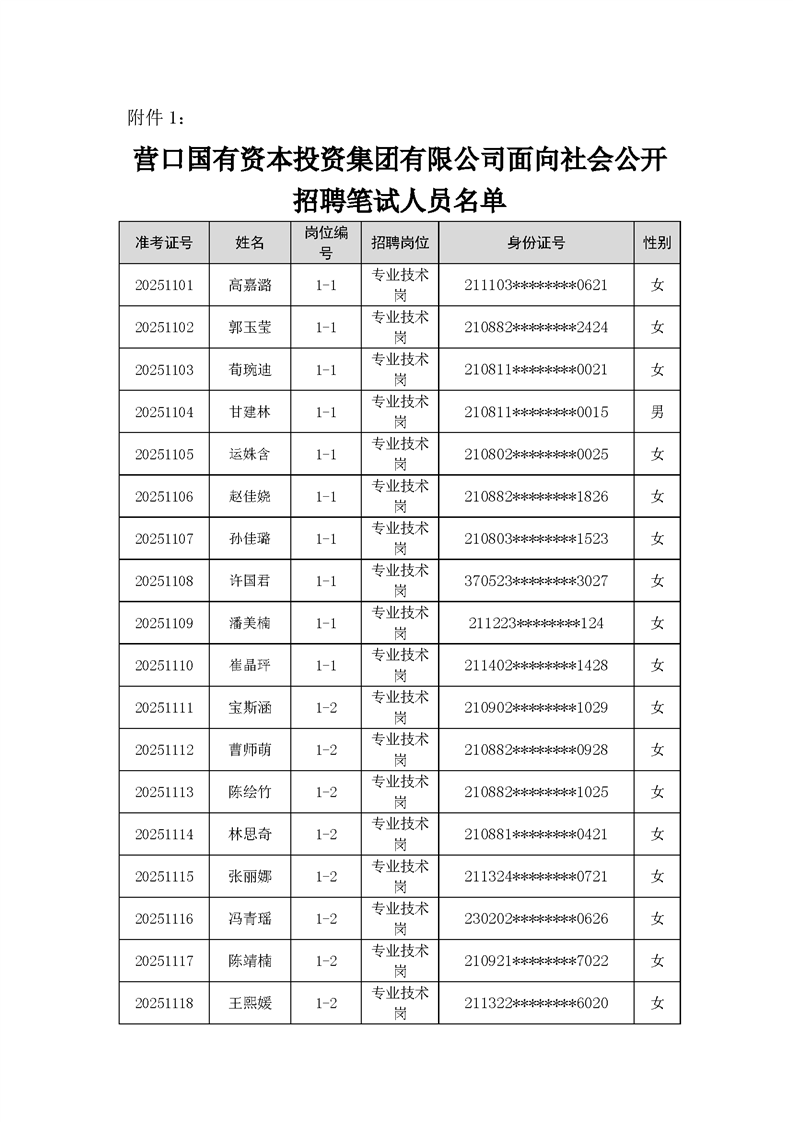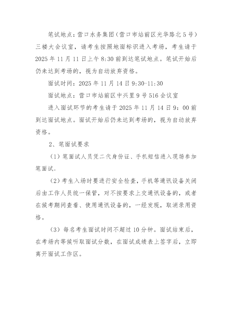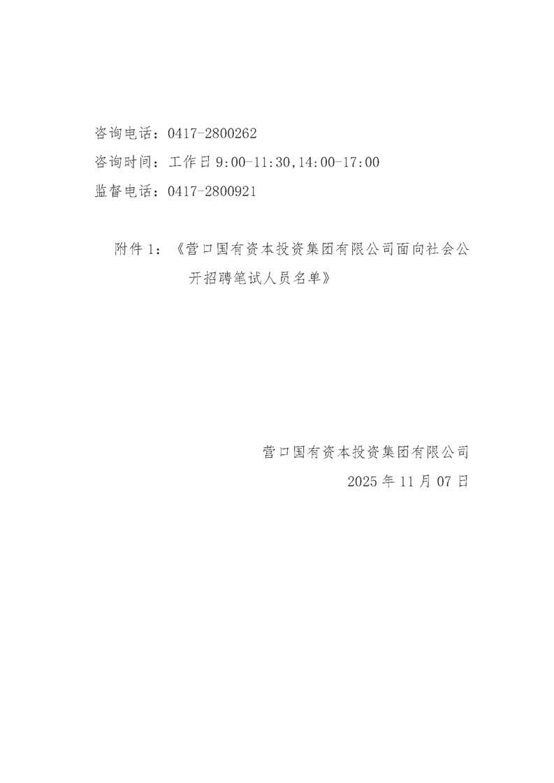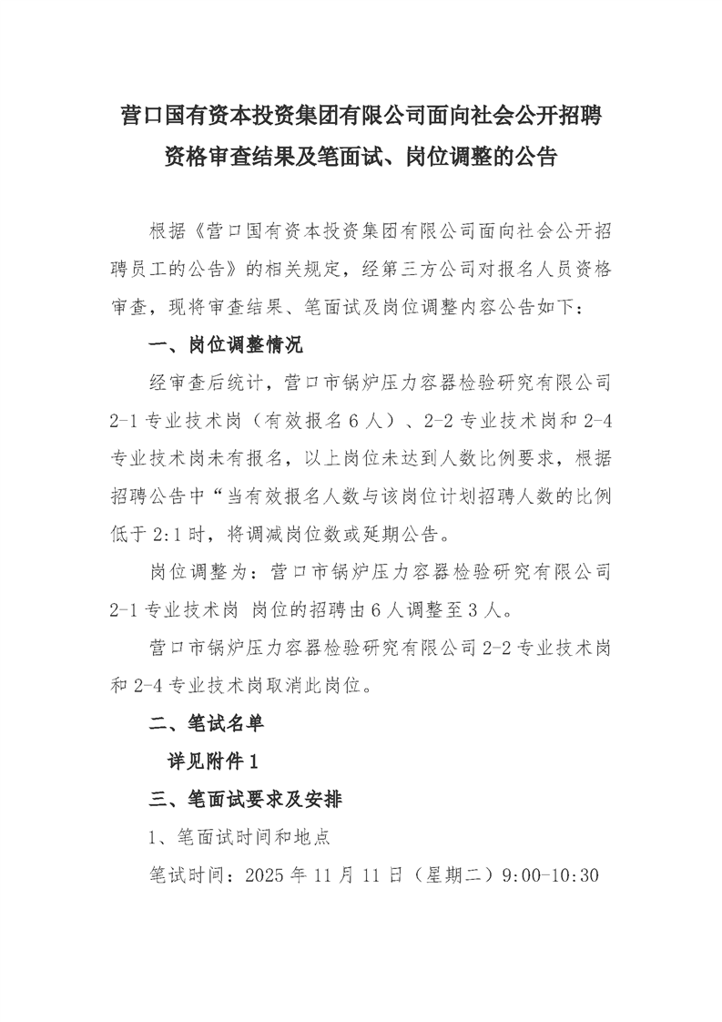 营口国有资本投资集团有限公司面向社会公开招聘资格审查结果及笔面试、岗位调整的公告