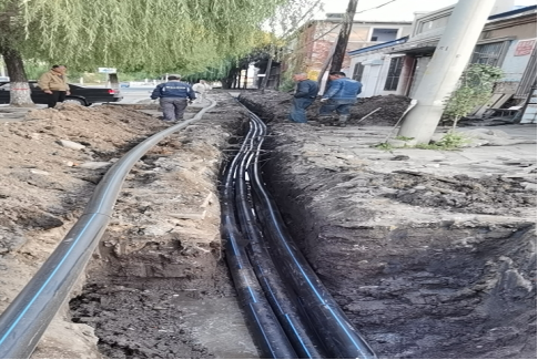 (辽河大街地下通信管廊铺设现场)